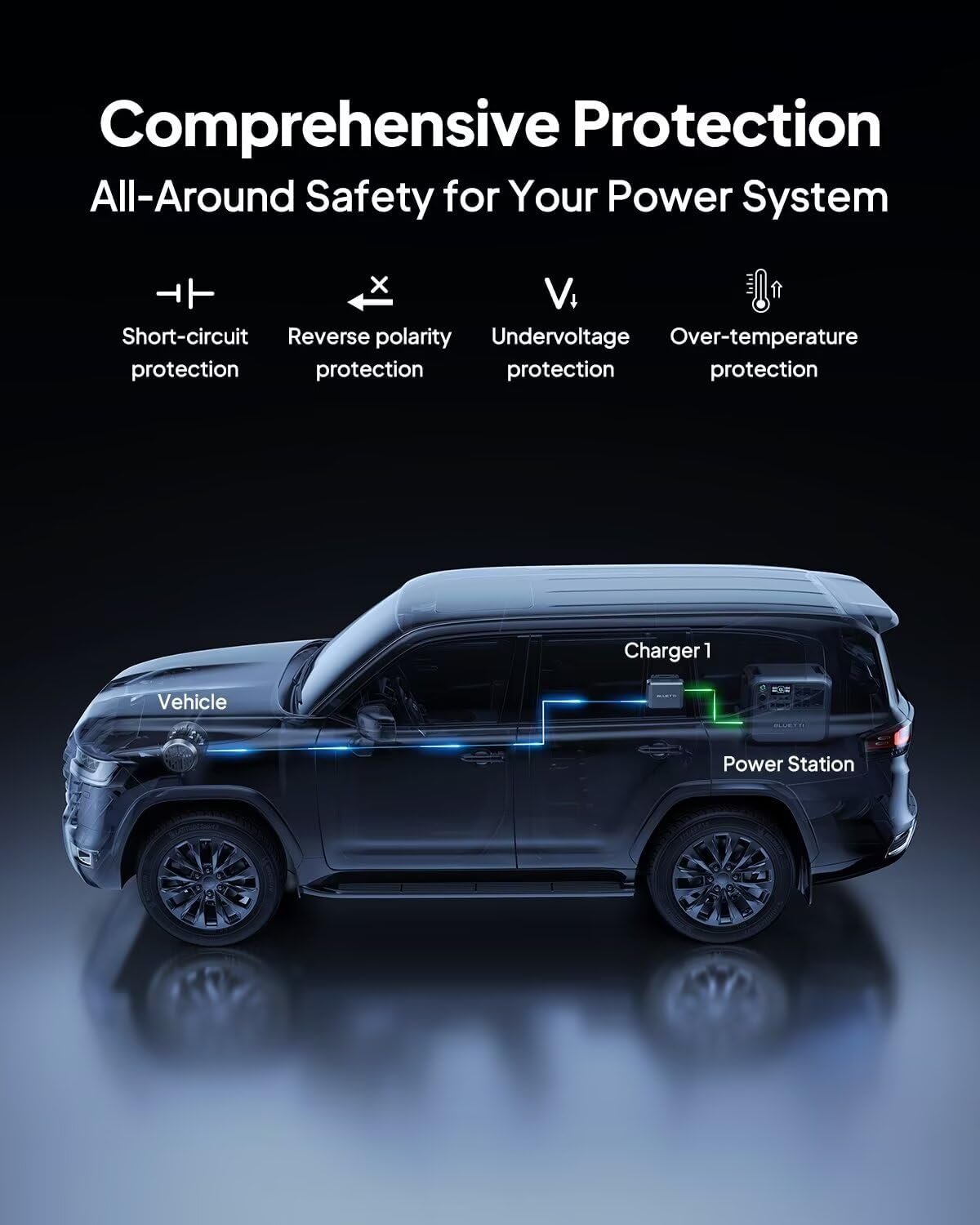 - [Universal Compatibility] – Works with all BLUETTI models and 95% of third-party power stations. Enjoy adjustable voltage—just plug in and power up easily, no matter where you are.